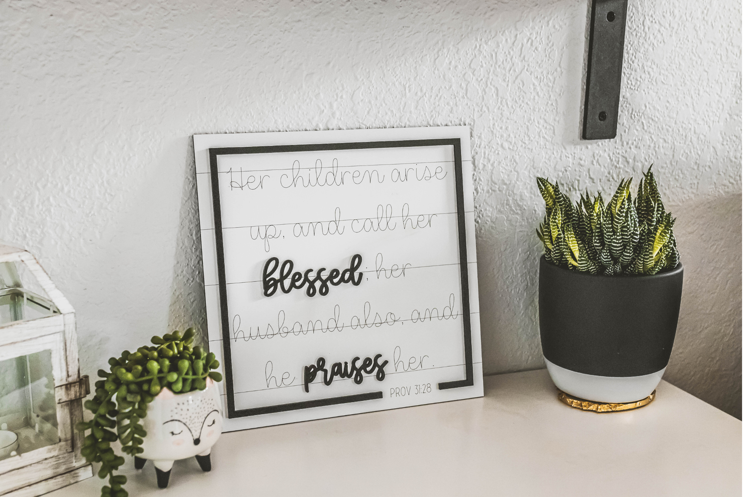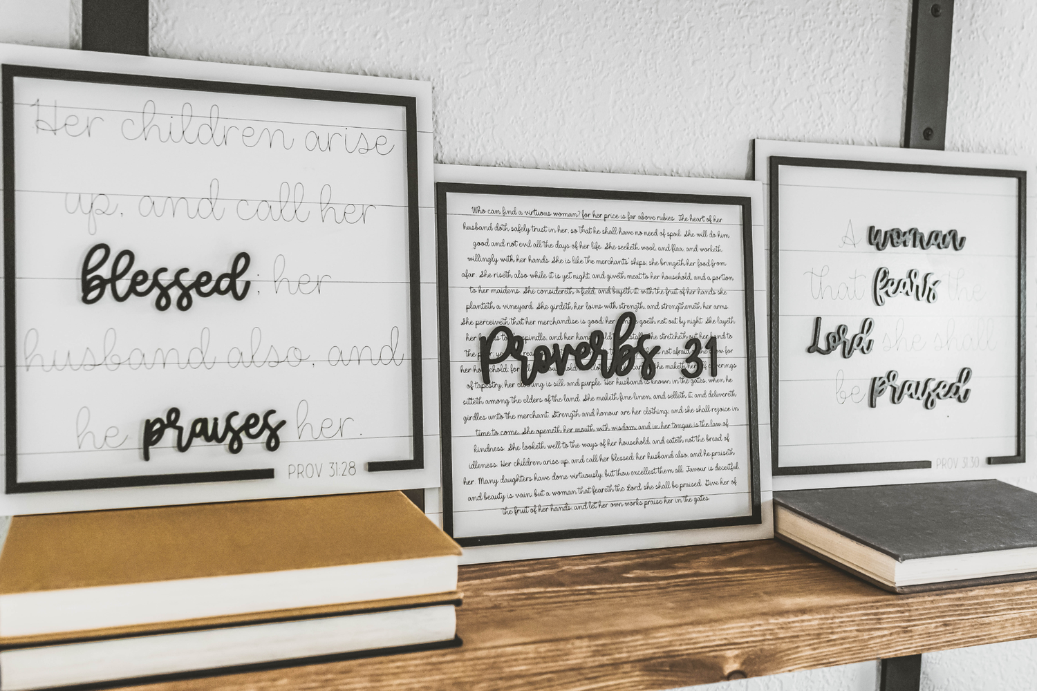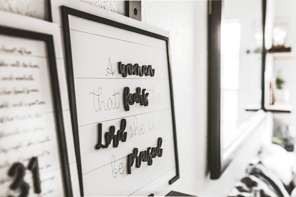 Add that personal touch to your home with this beautiful Proverbs 31 sign. This makes the perfect accent to your bookshelf, mantle or that space on the wall your just not sure what put there. Each sign is made with love and made specifically for you.
